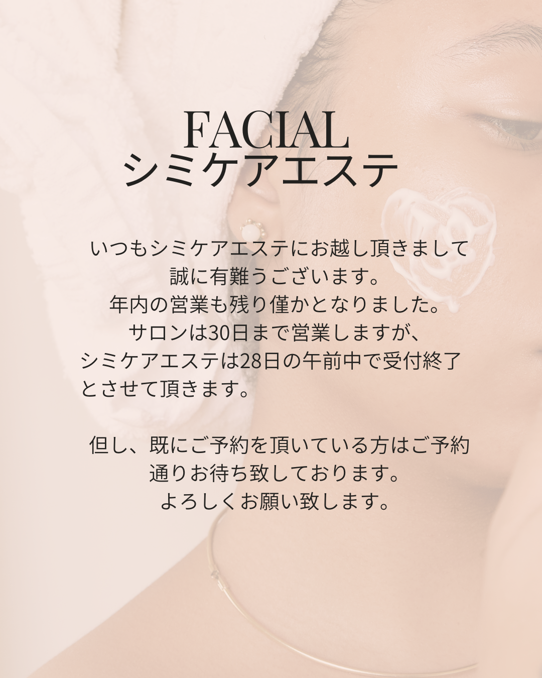 エステ年内のお休みについて